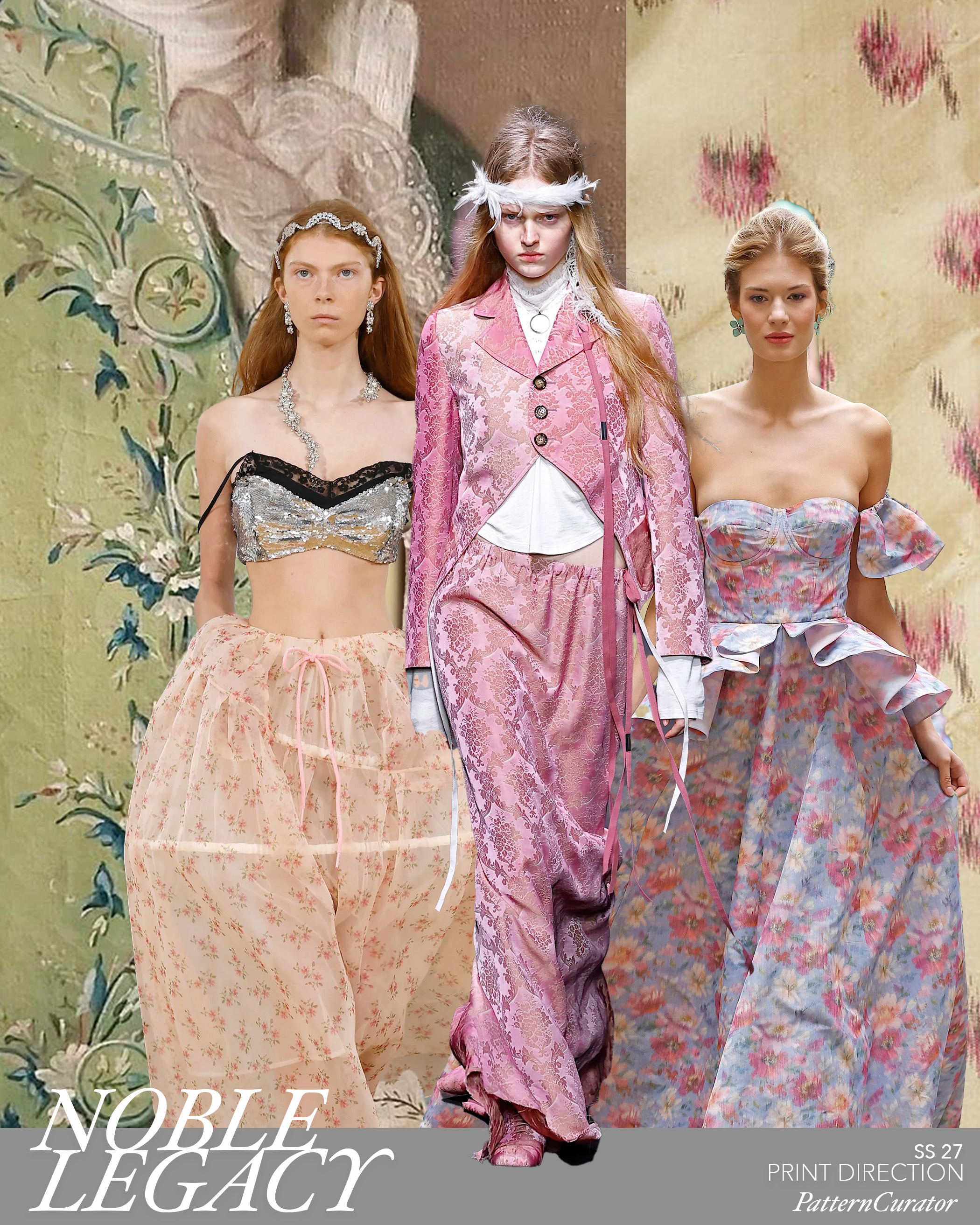 Prints draw from historical ornament and aristocratic influence, composed with balance and intention. Elements feel elevated and enduring, where decoration is controlled and placed to express legacy with clarity and restraint. Runway: Simone Rochas / Annn Demeulemeester / Luisa Beccaria (SS26)