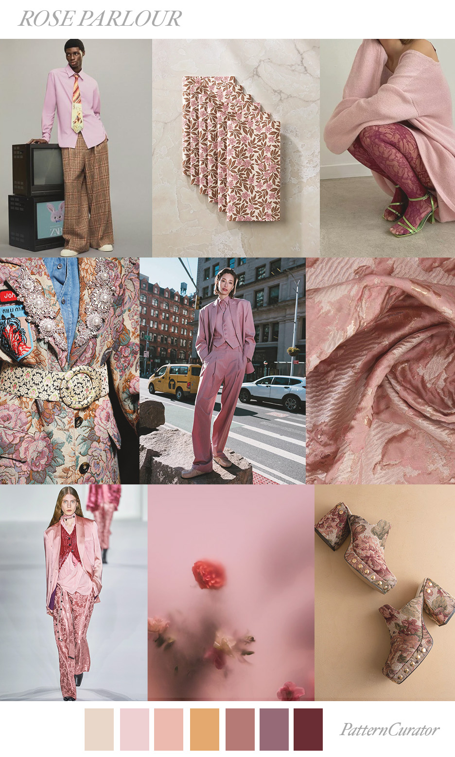 Mood board and color palette shown for editorial and educational purposes. Colors are approximate and may not exactly match the original source. Reference imagery used only for visual analysis; editorial research context, commentary and color direction.
